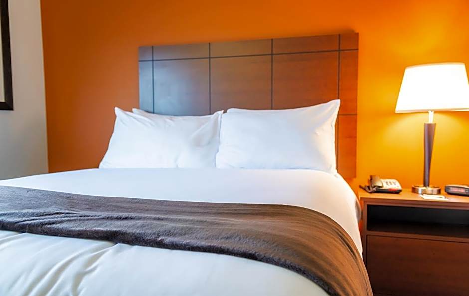 This room features the Single Queen My Place Plush pillow top bed. Microfiber sheets and firm soft pillows are included. A LED flat-screen TV with premium channels including HBO and complimentary wired or wireless is featured. This room has the signature My Kitchen complete with a full size refrigerator/ice maker, microwave, 2 burner stove, sink, toaster and single use coffee maker. A table with 2 chairs can be used for dining or as a work desk. Closet space including ironing facilities and additional amenities are available for extra comfort.